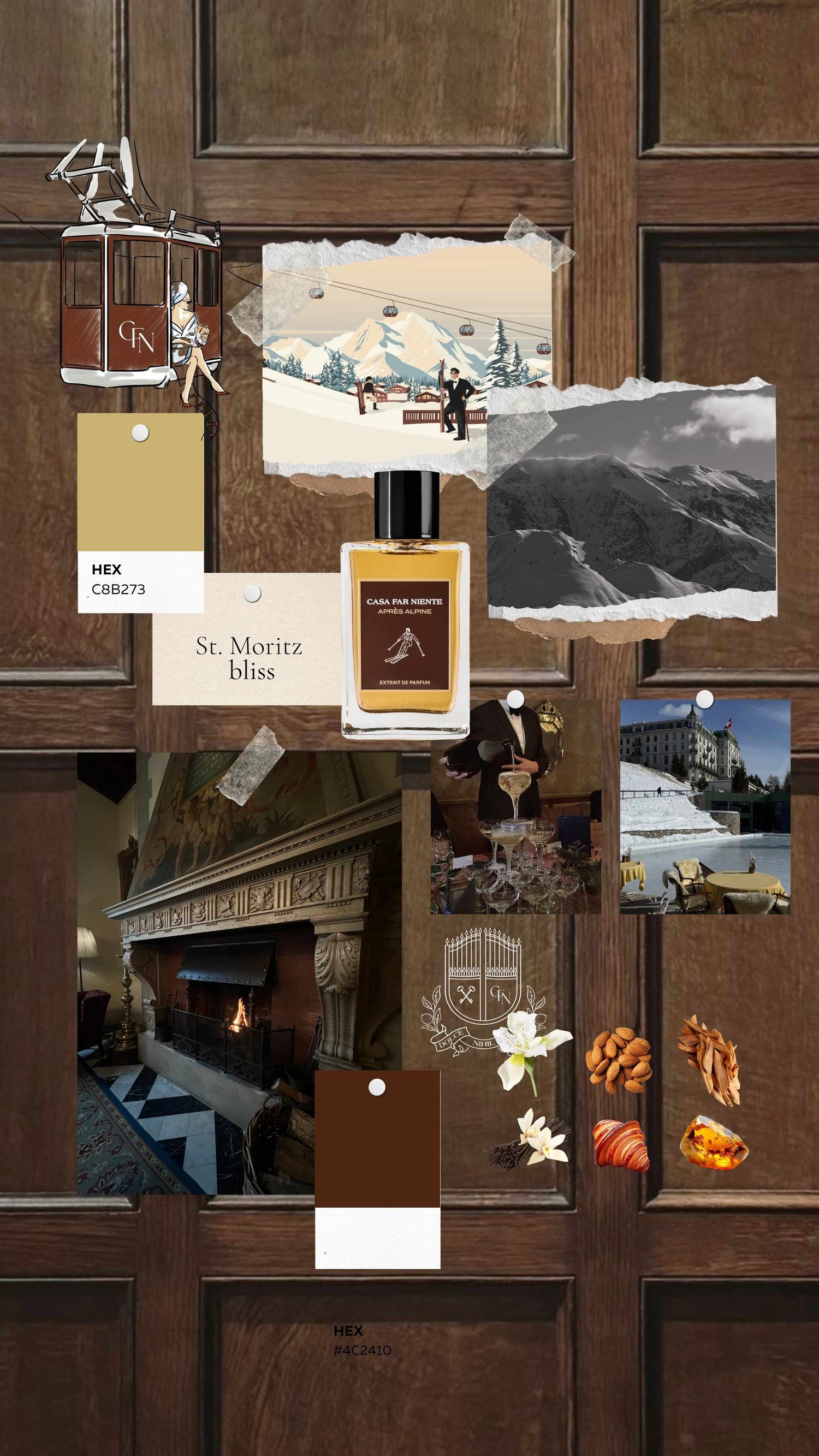 "I imagined Après Alpine as the comforting return to a mountain cabin after a day on the slopes. The air is warm with croissants and almond milk, wrapped in the powdery elegance of iris and the soft embrace of your favorite cashmere sweater."